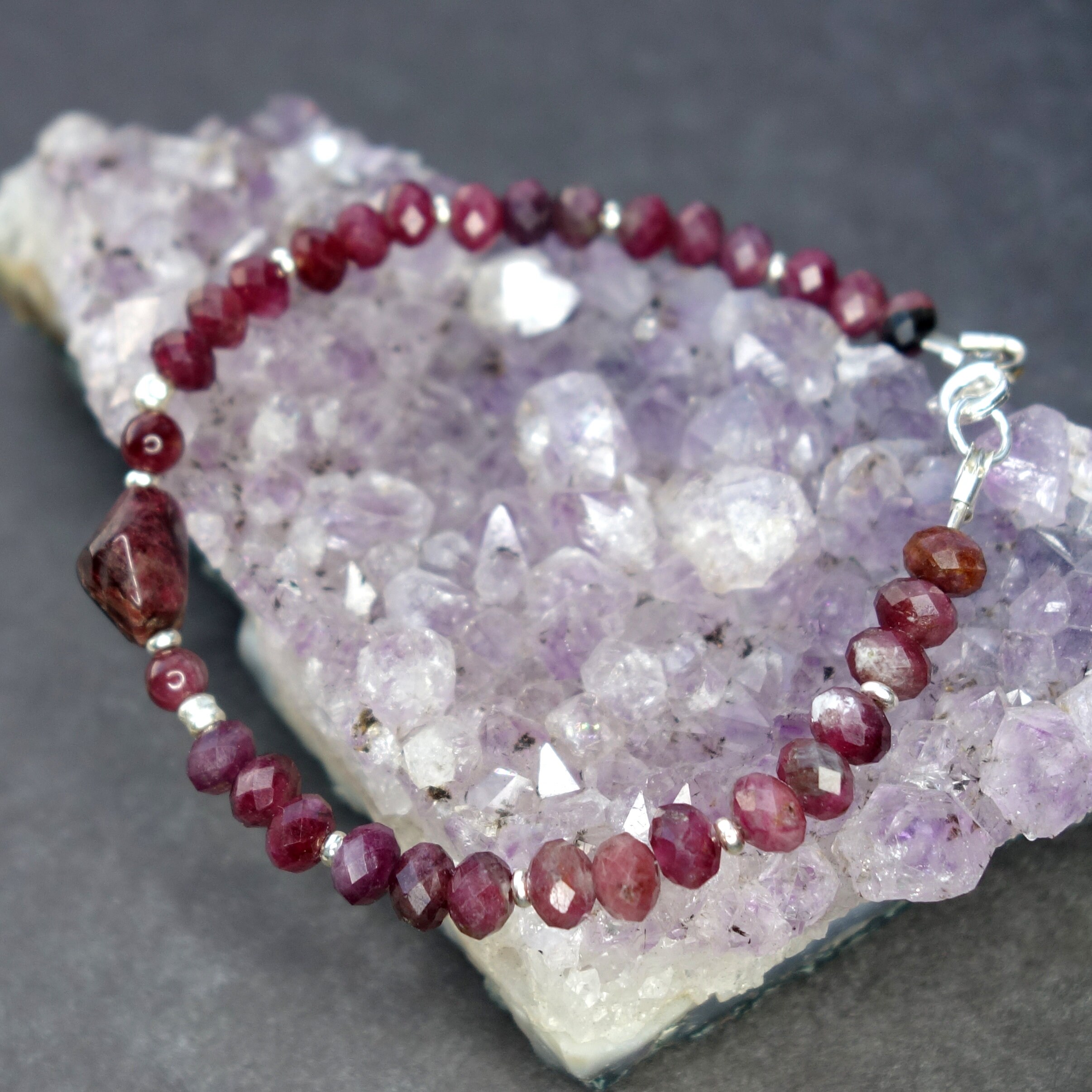 Handmade Rubellite Tourmaline Bracelet with Sterling Silver.