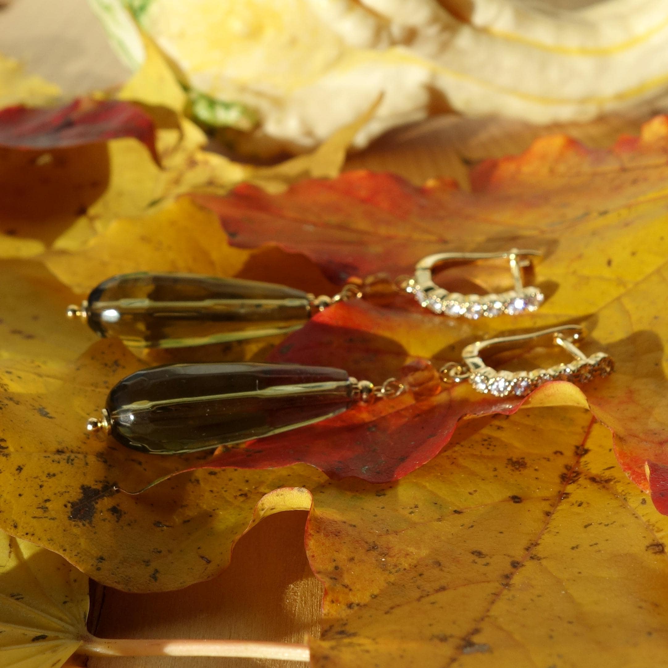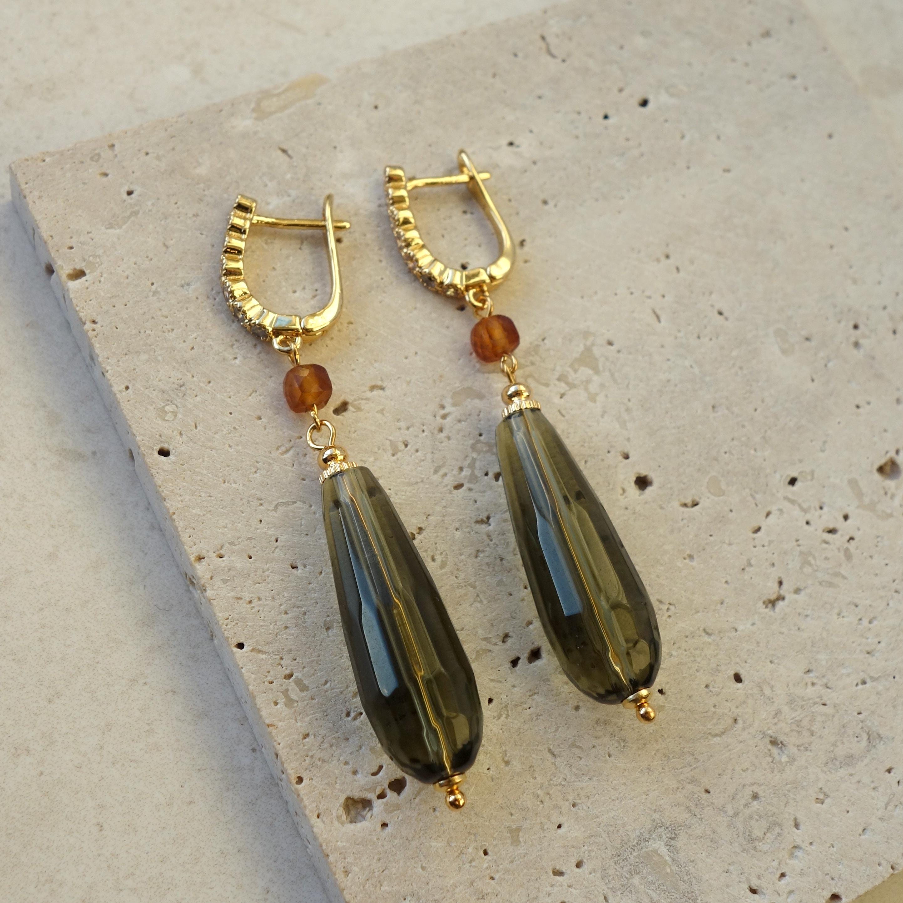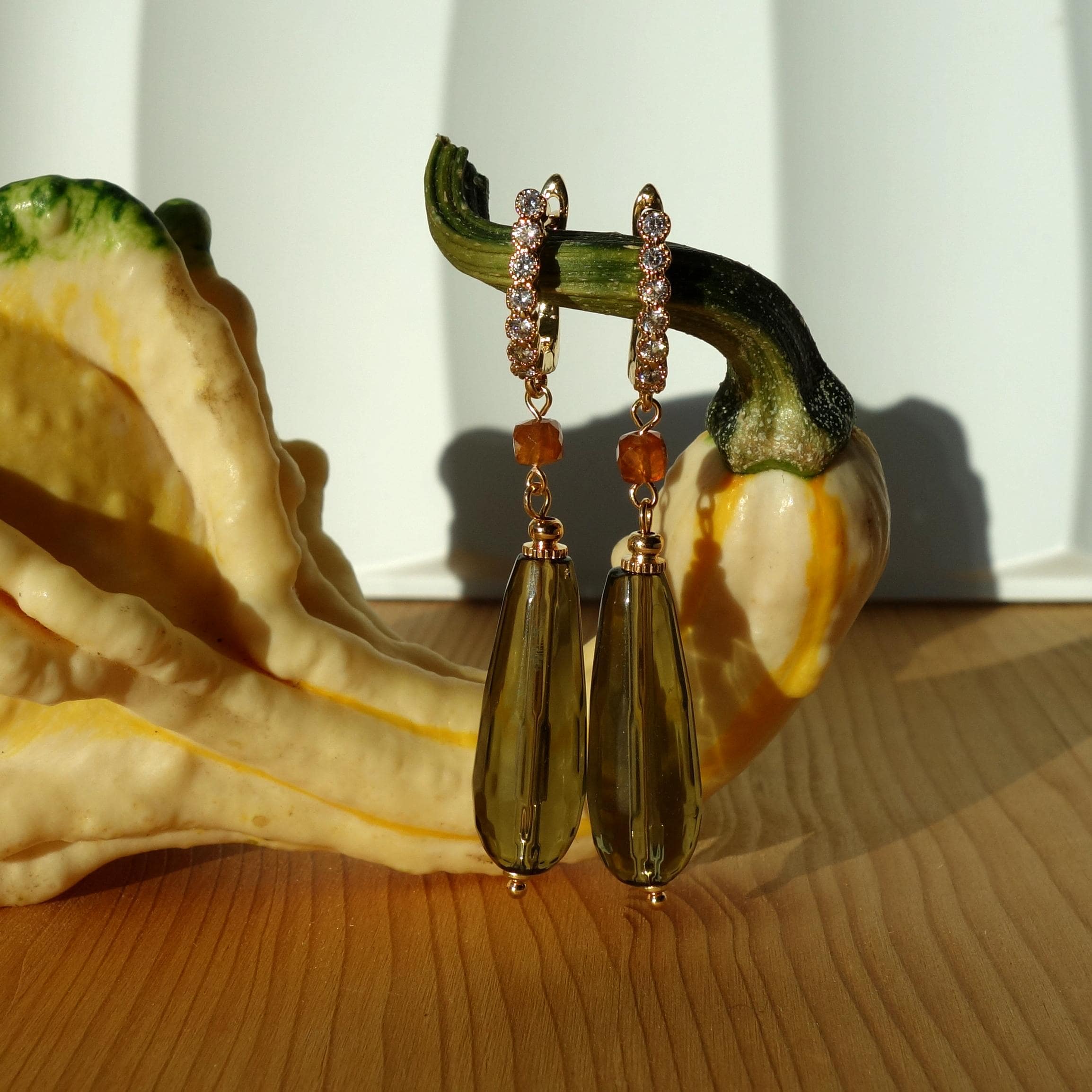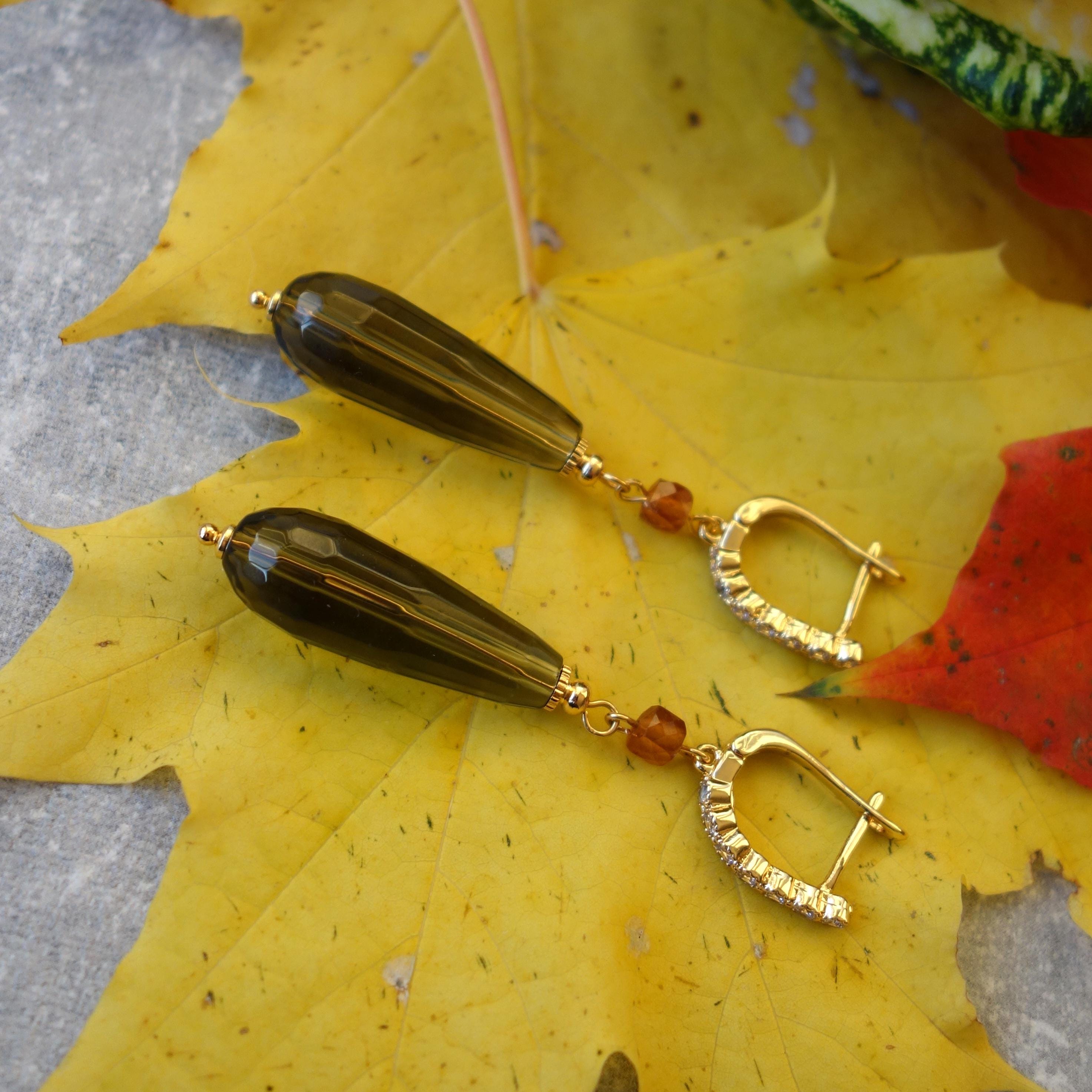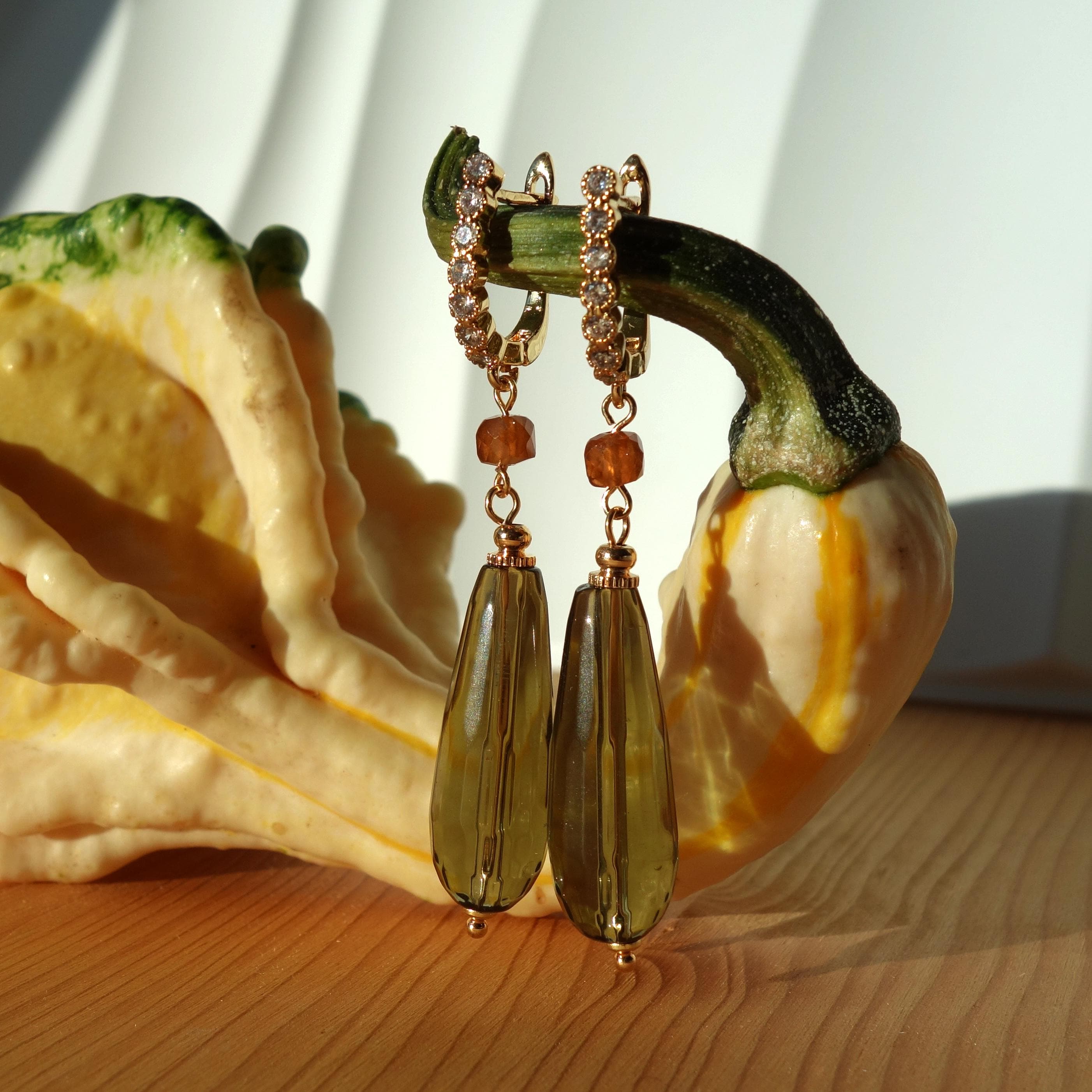 Add a touch of sophistication and warmth to your style with these elegant drop earrings, featuring natural faceted smoky quartz and rare orange spessartine garnet (Mandarin garnet). The rich earthy hues of smoky quartz beautifully complement the fiery brilliance of spessartine, creating a unique and eye-catching design.