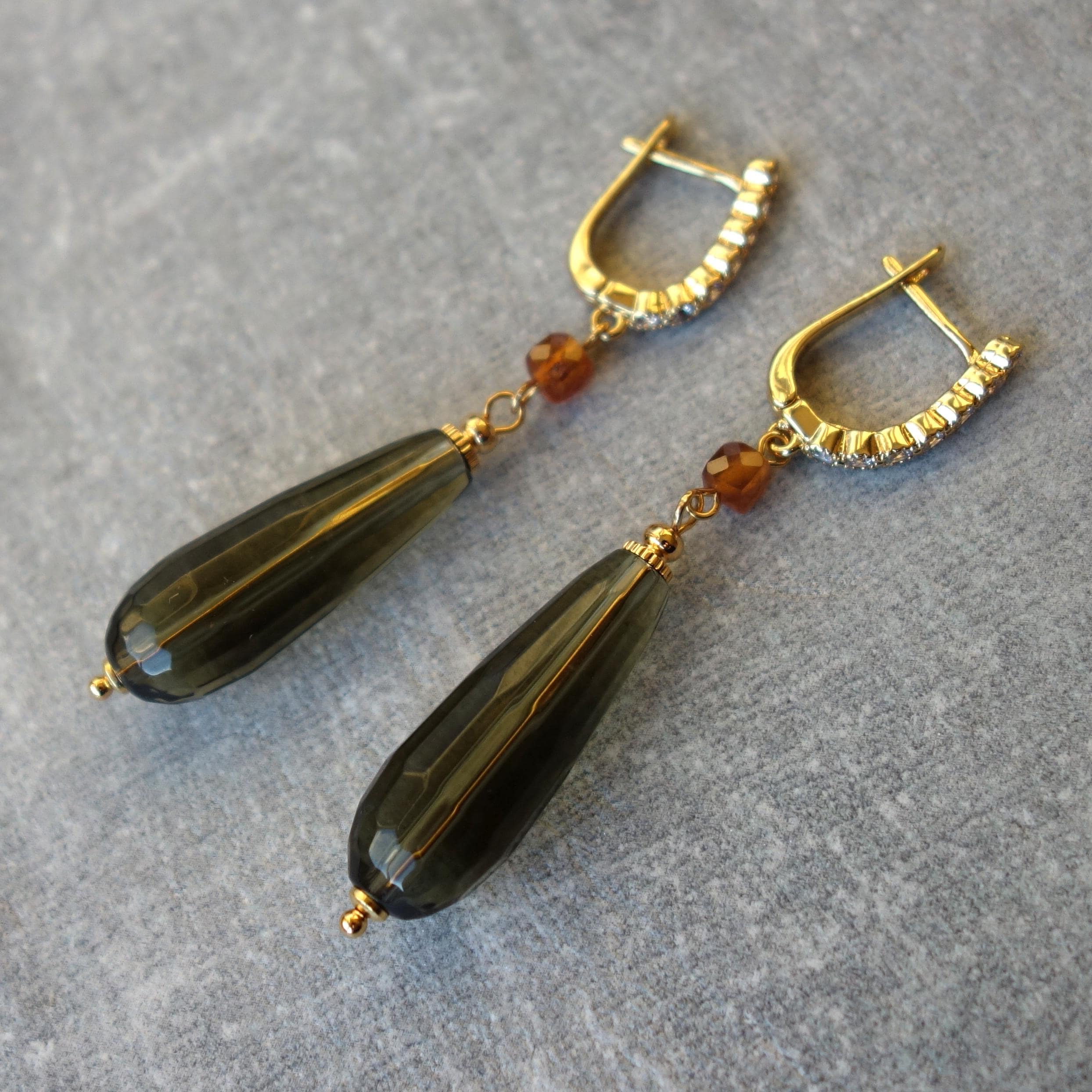 Gemstones: Genuine smoky quartz (faceted drop) & natural spessartine garnet (orange, faceted cube)