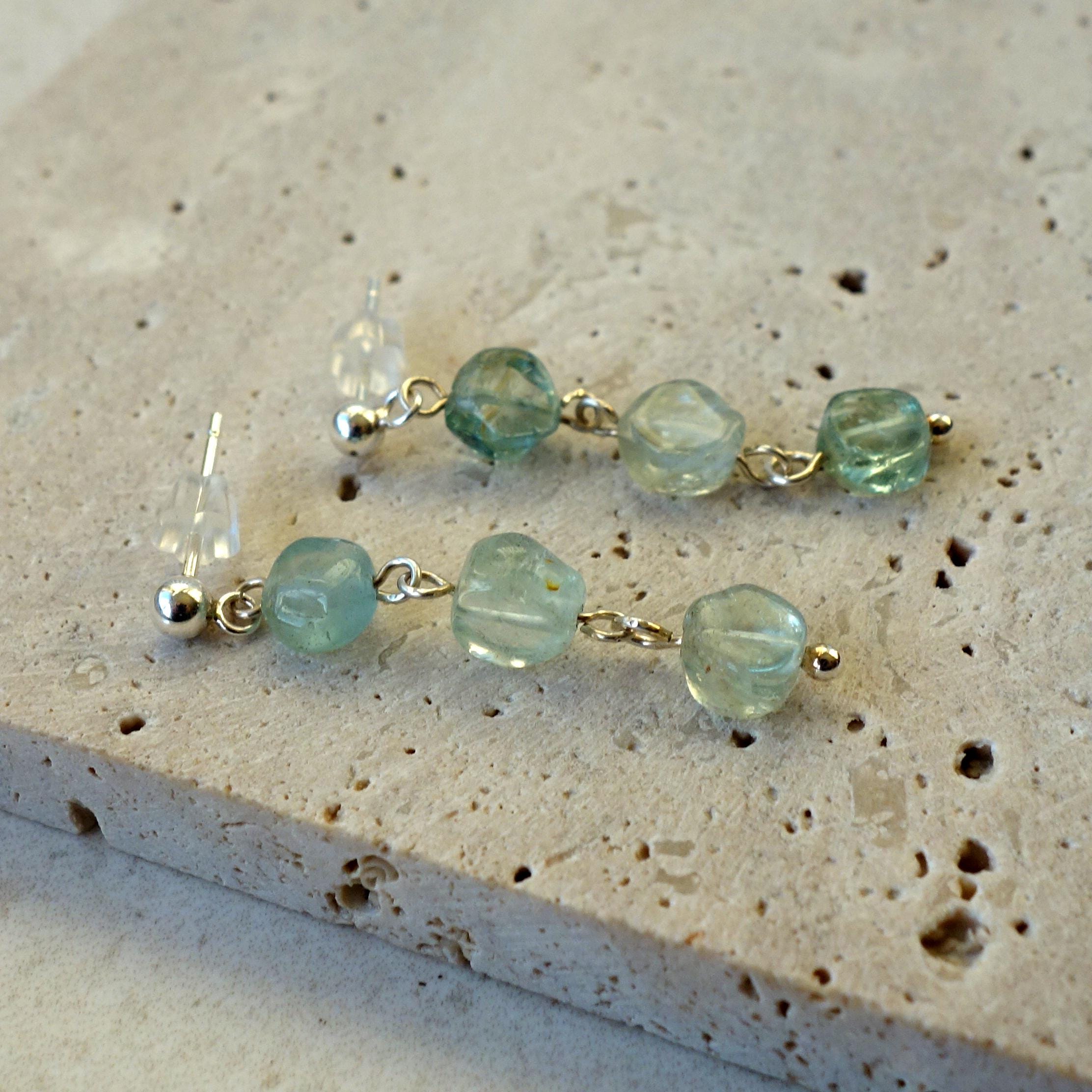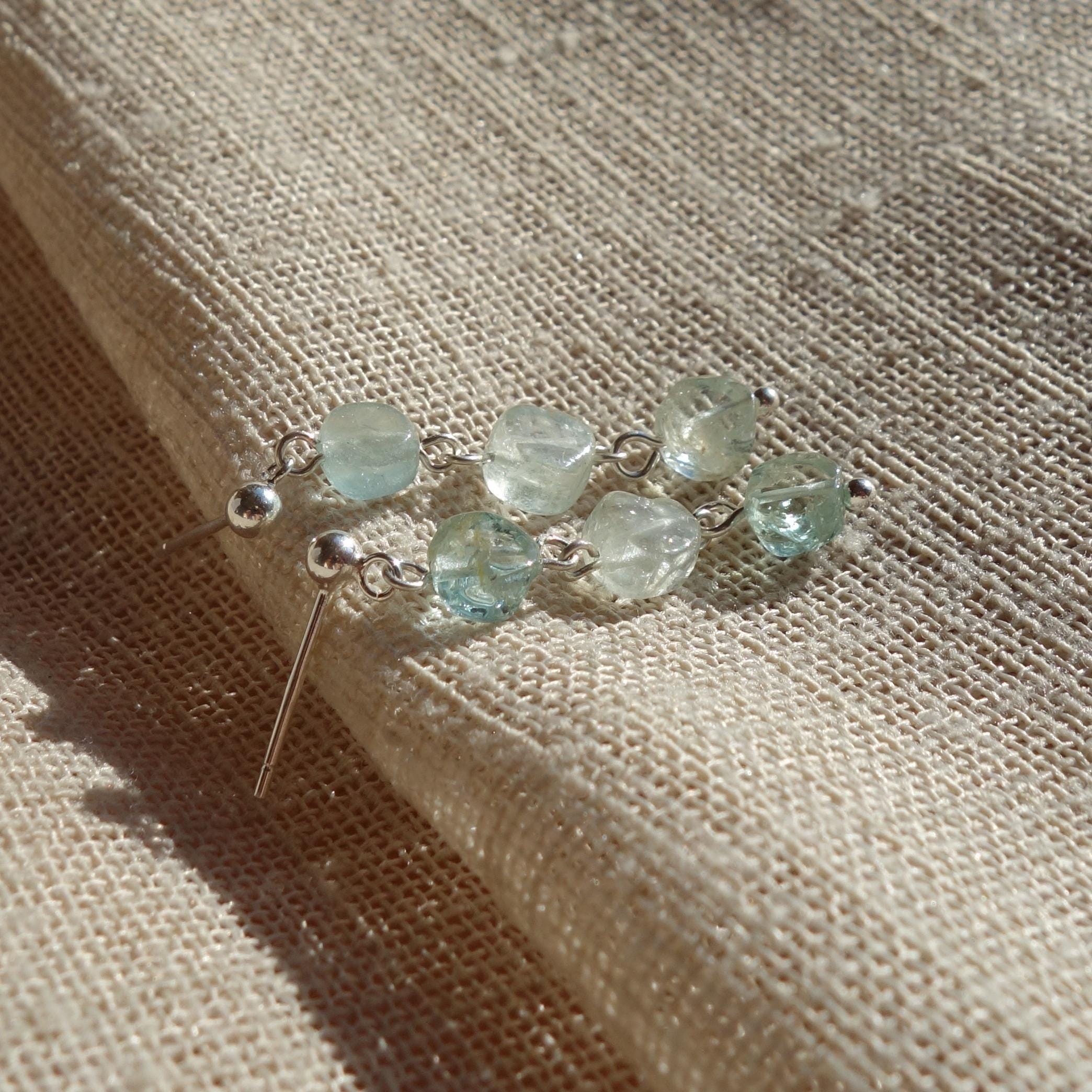 Light, calm, and a little bit wild — these earrings are made from natural aquamarine and sterling silver.