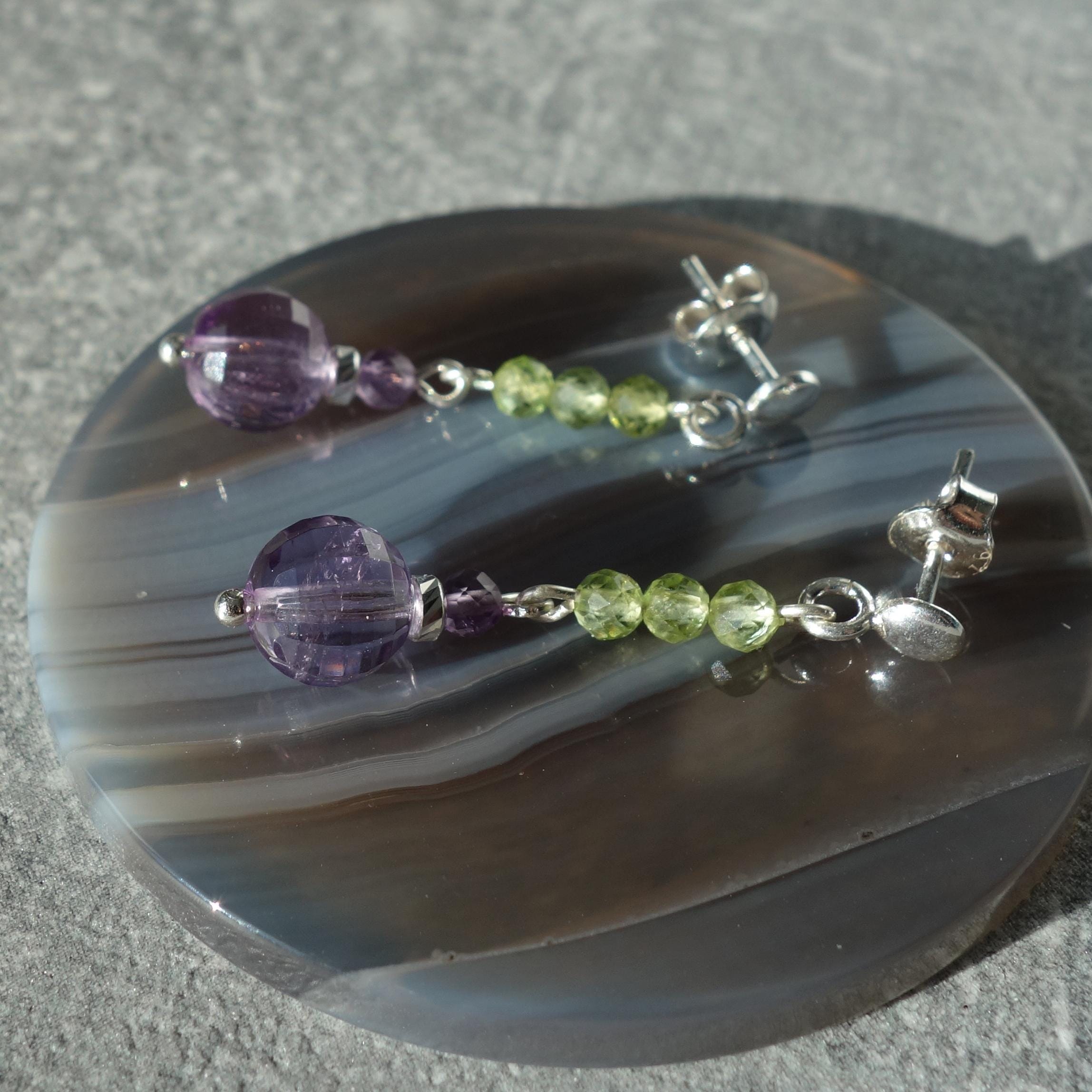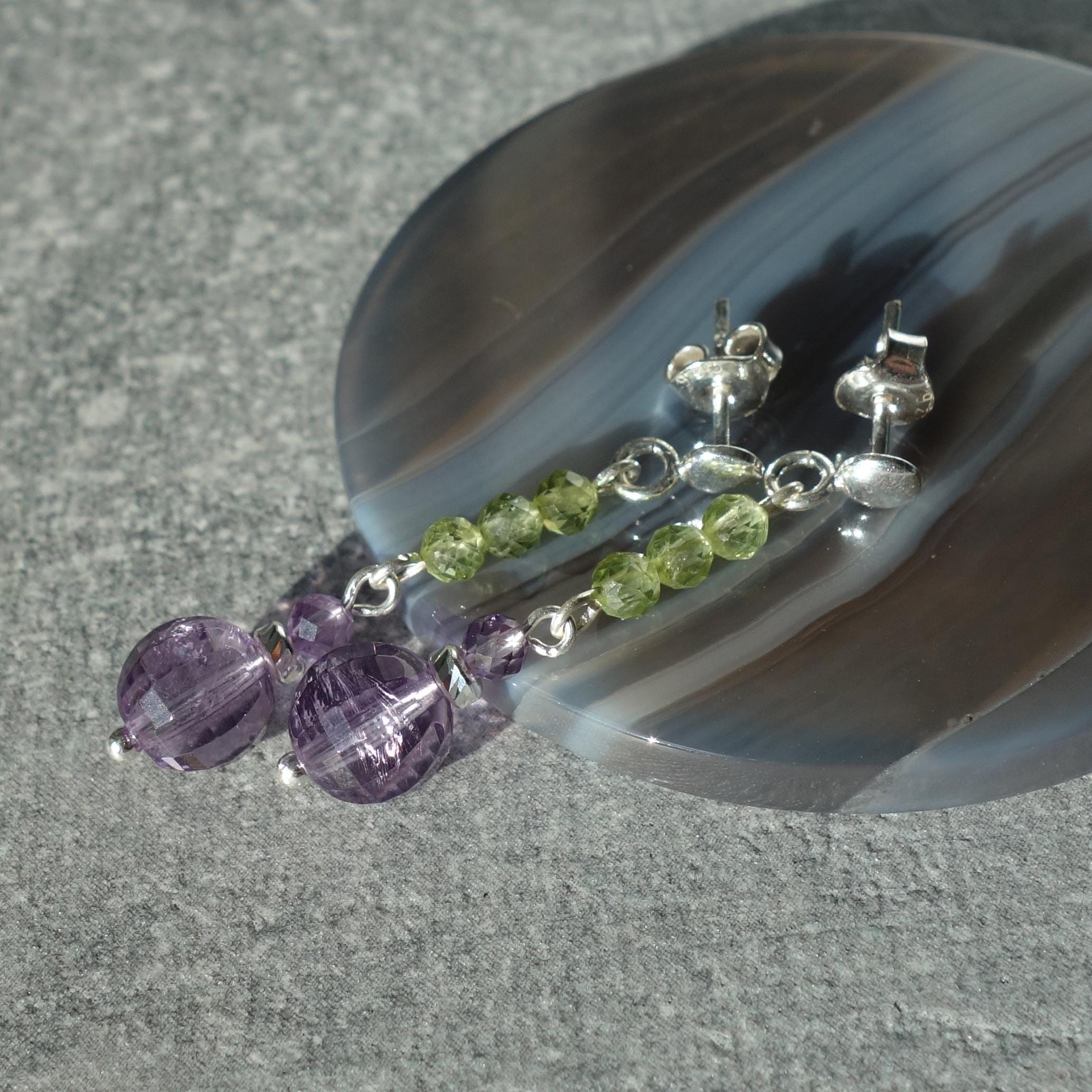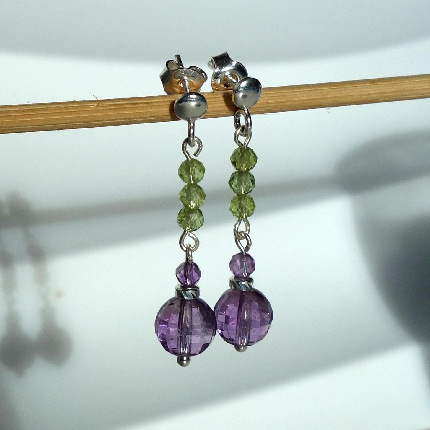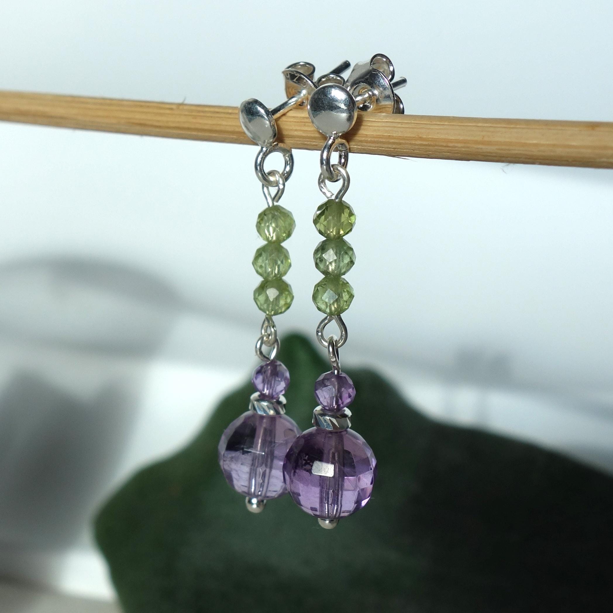 Amethyst and peridot (chrysolite) handmade earrings with 925 sterling silver.