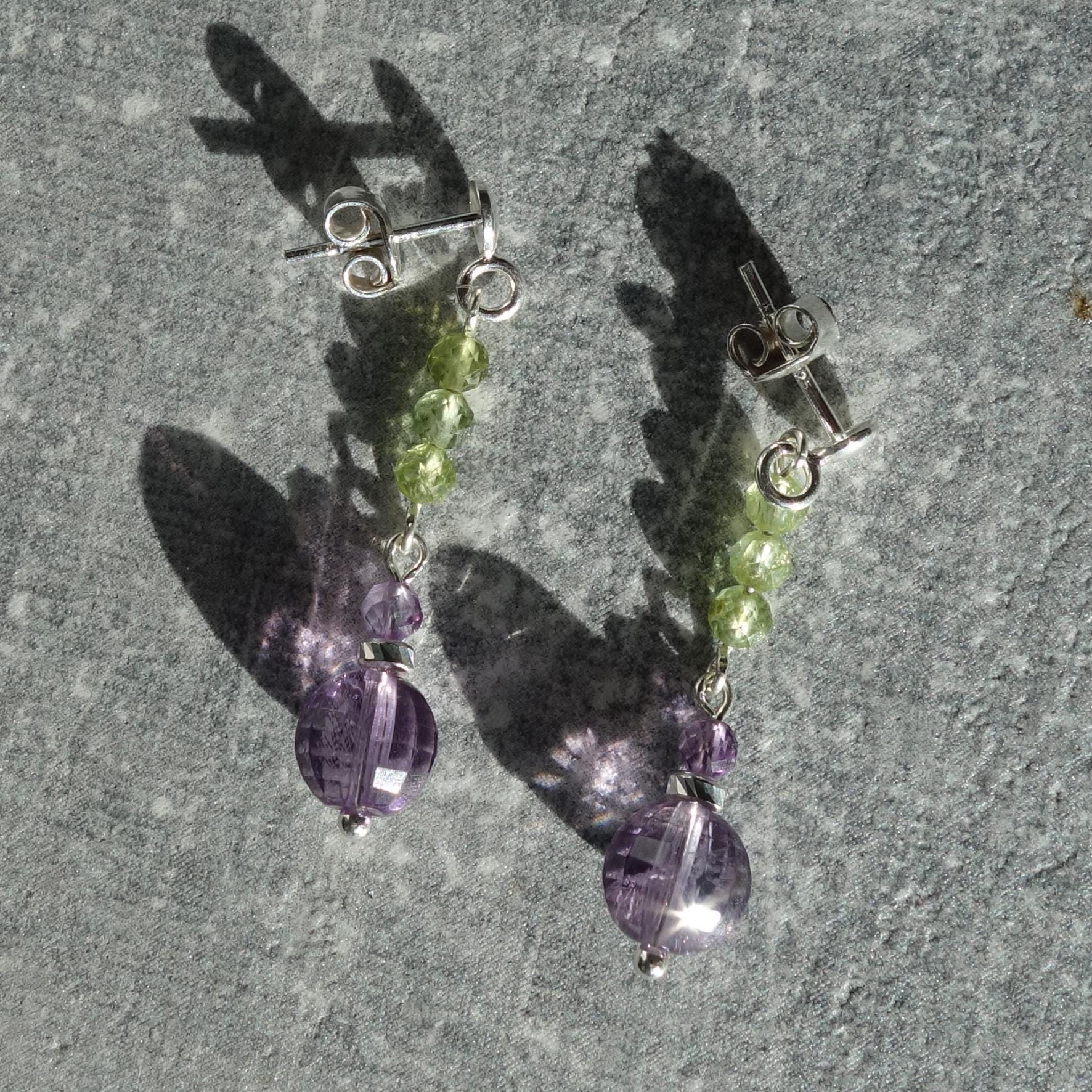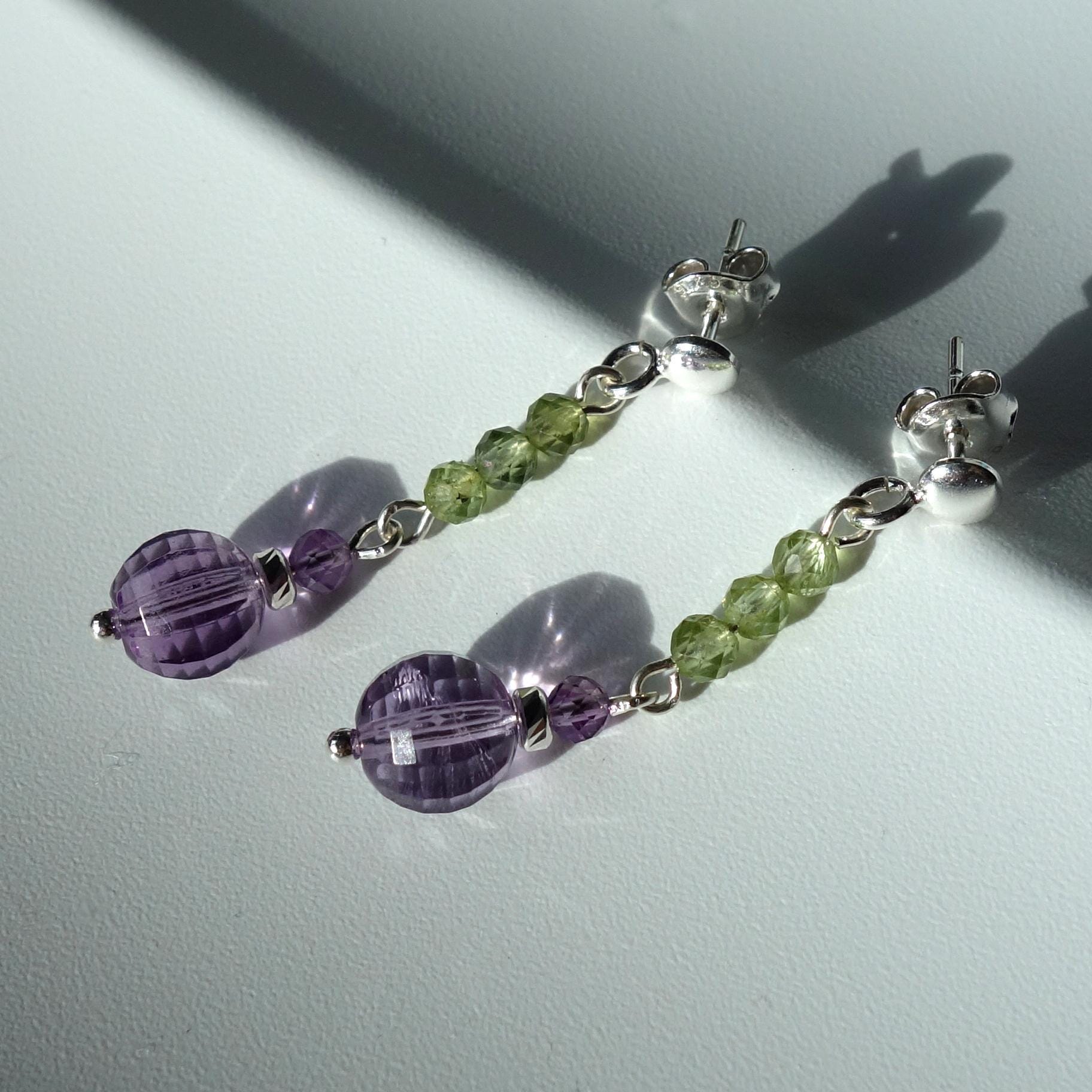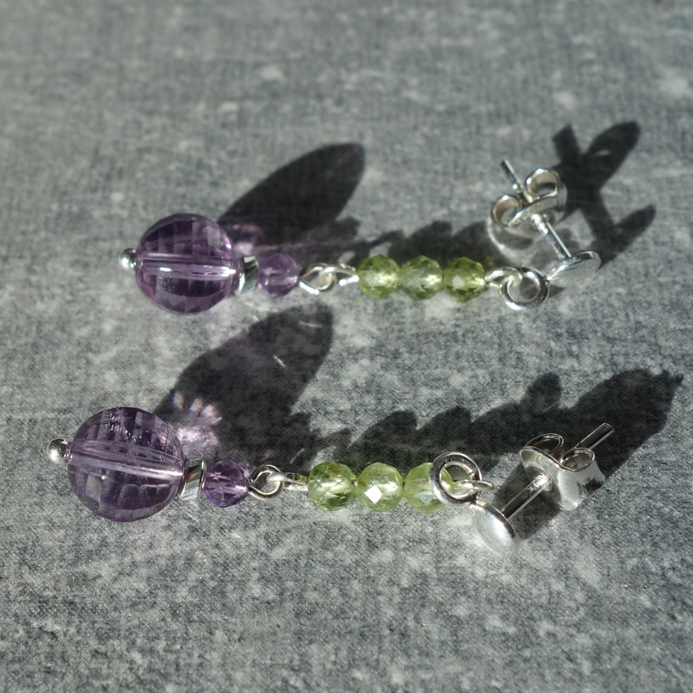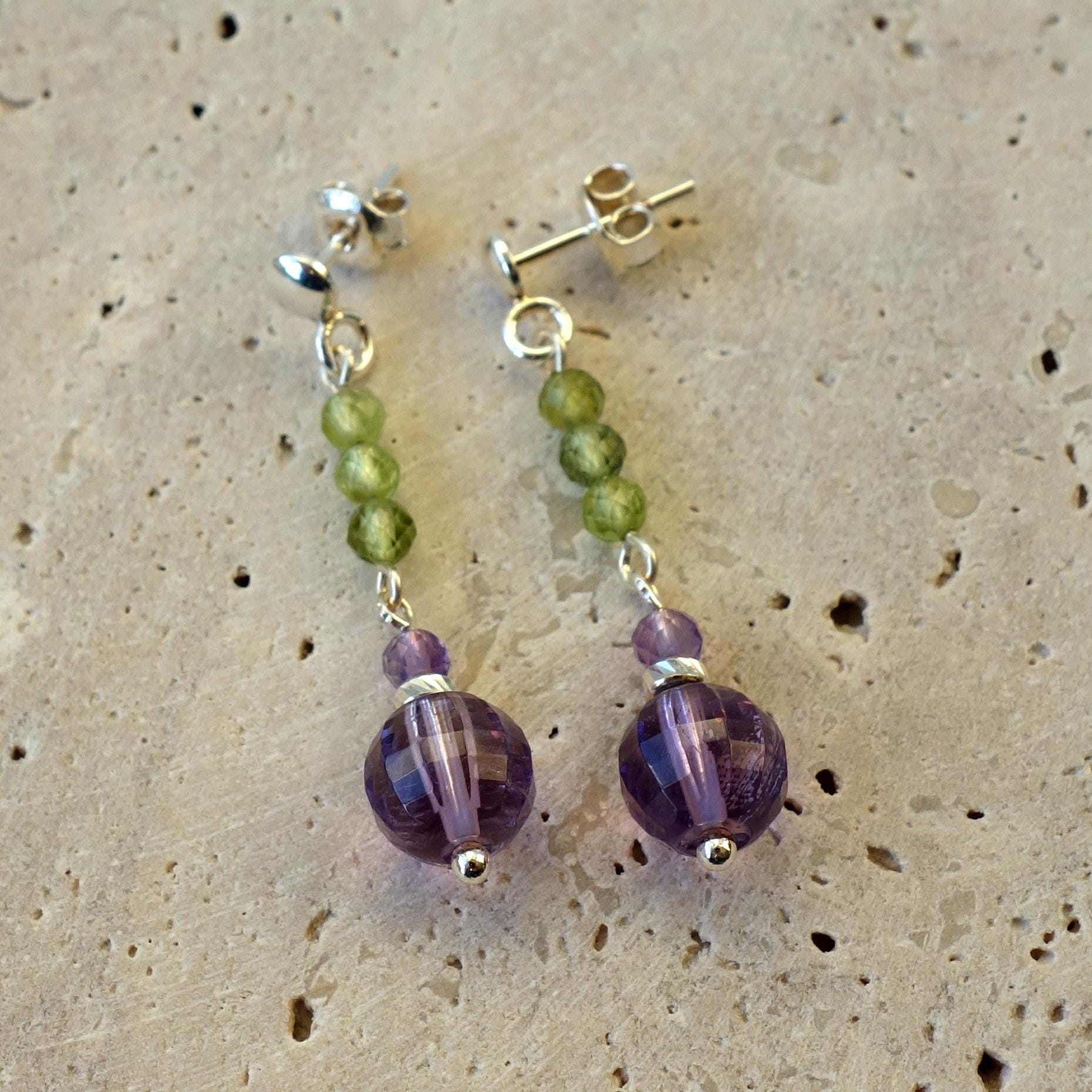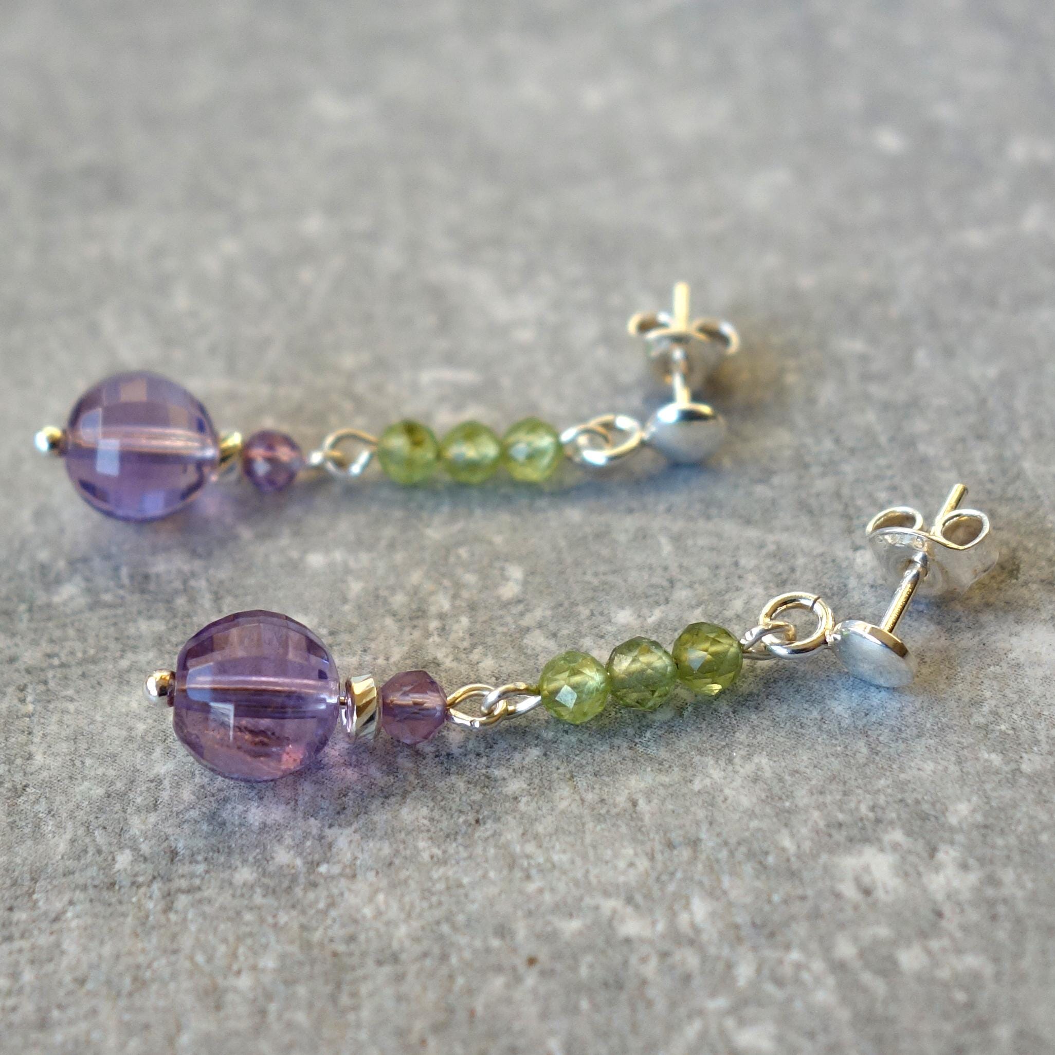 Amethyst and peridot (chrysolite) handmade earrings with 925 sterling silver.