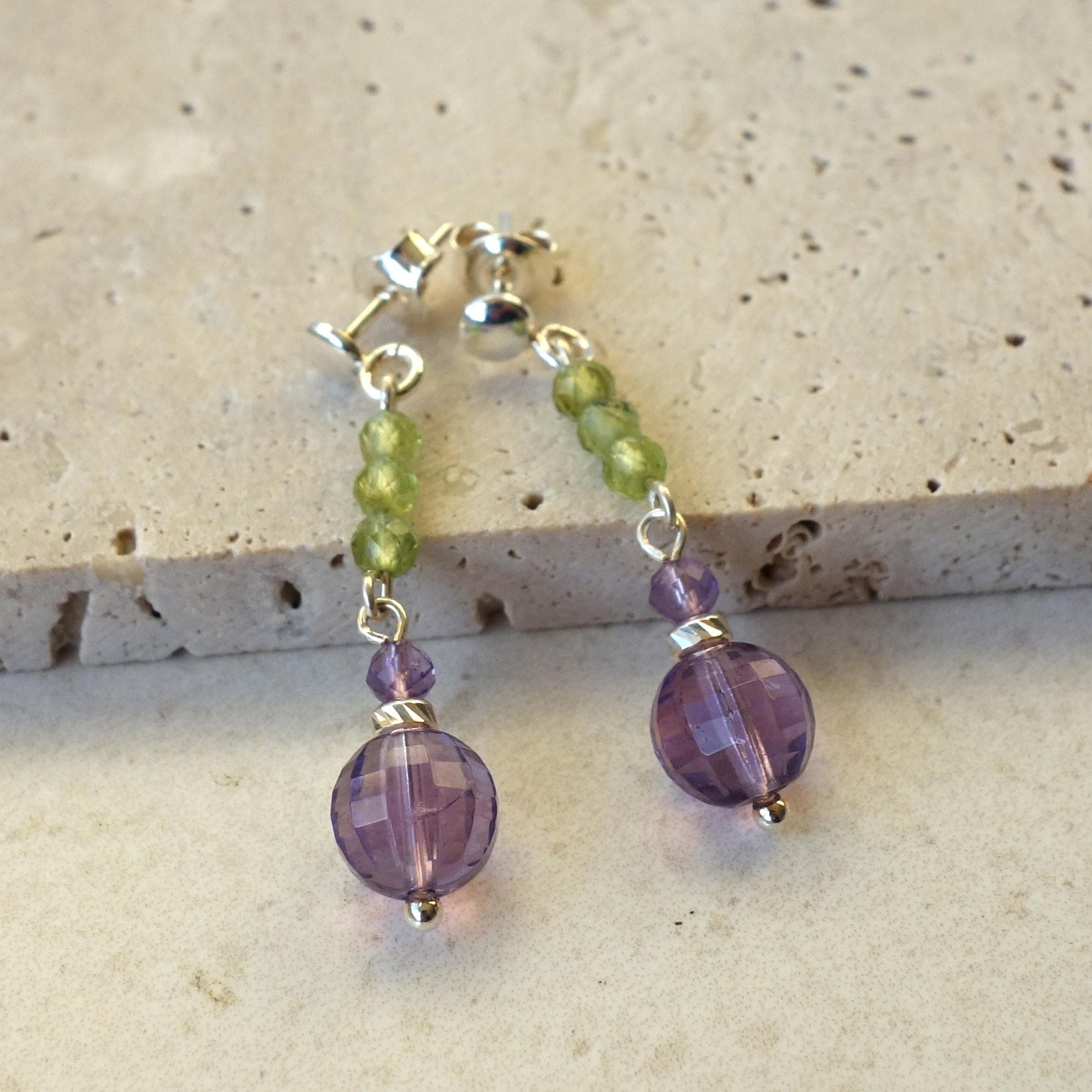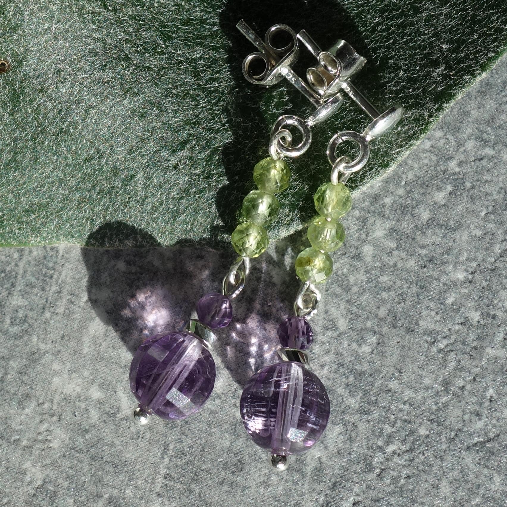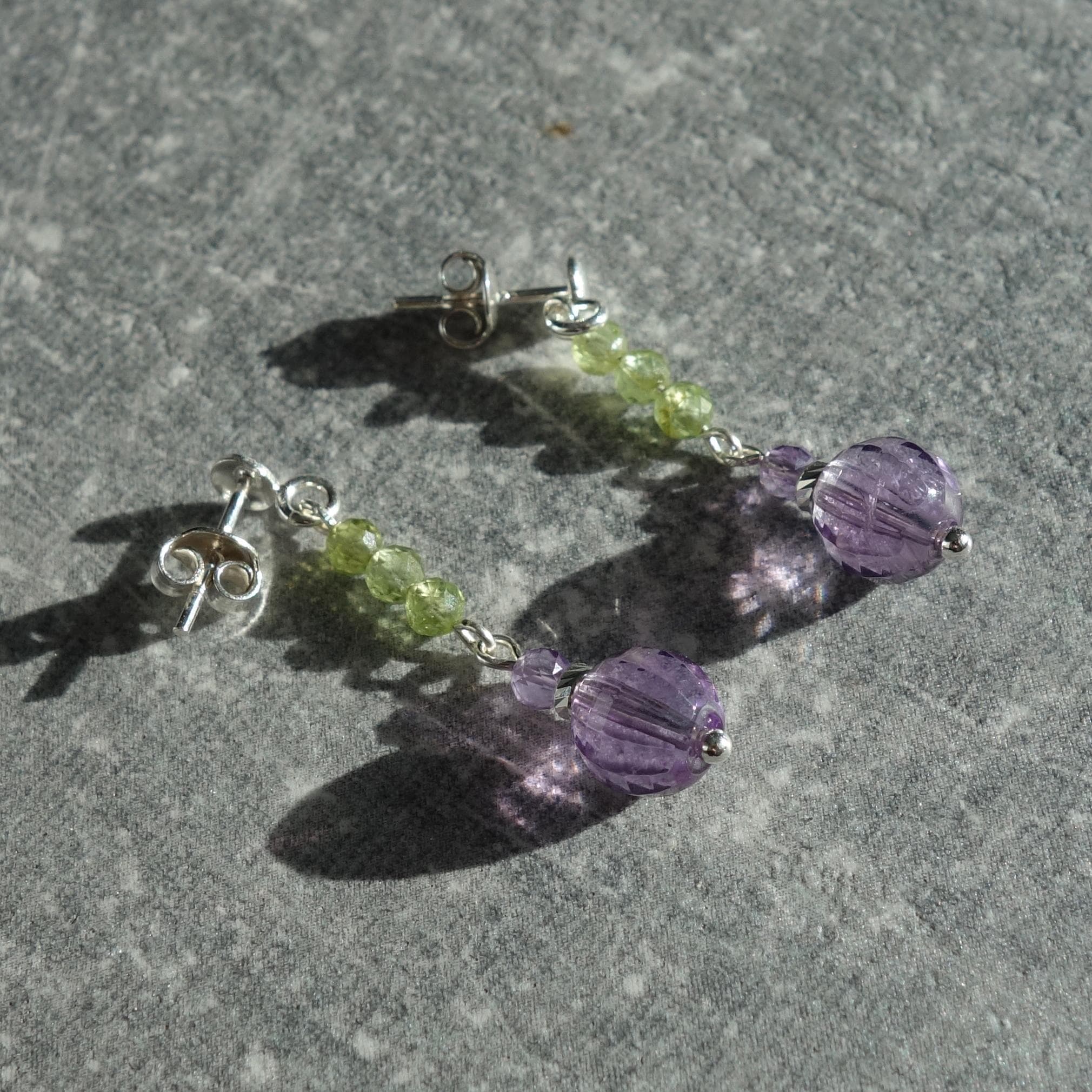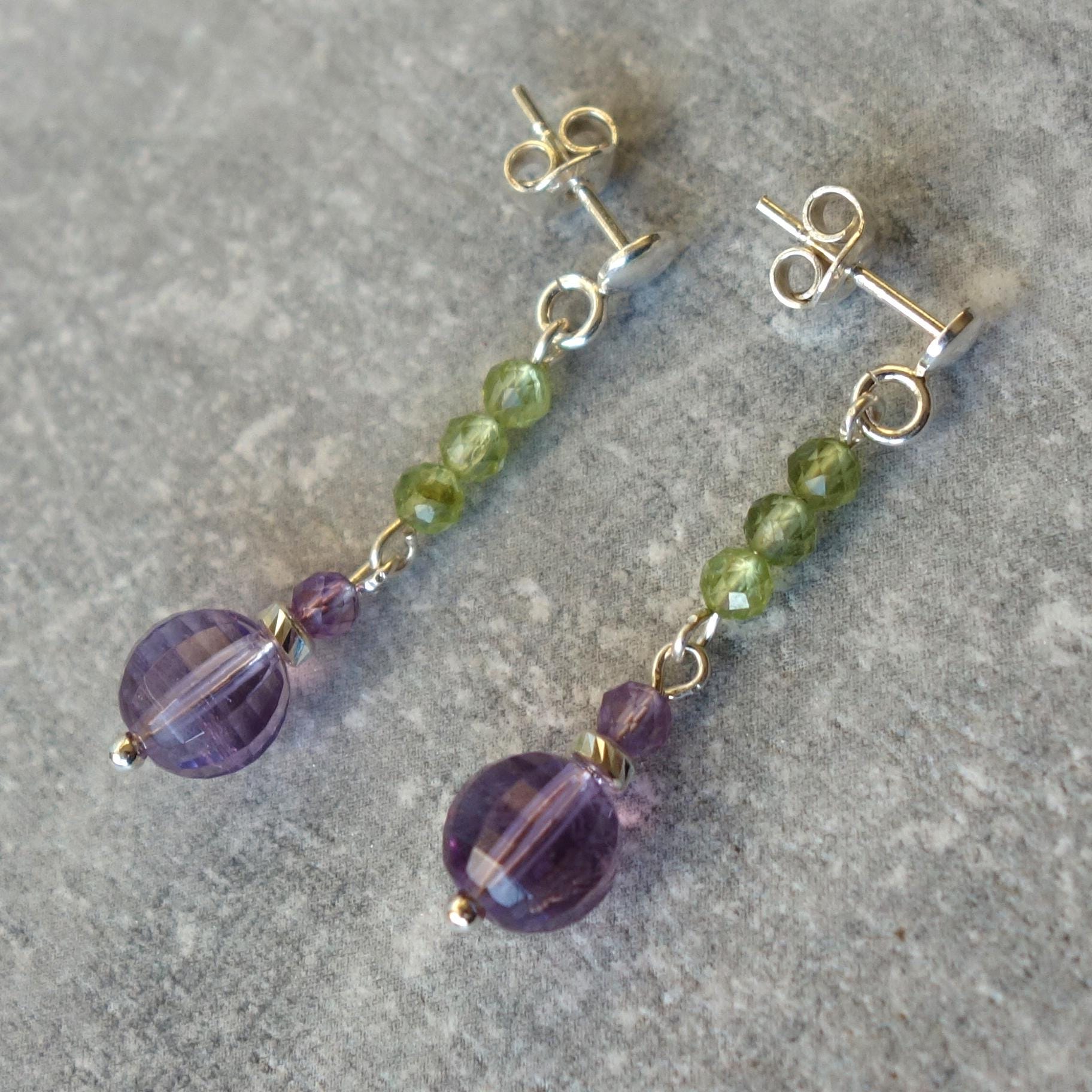Amethyst and peridot (chrysolite) handmade earrings with 925 sterling silver.