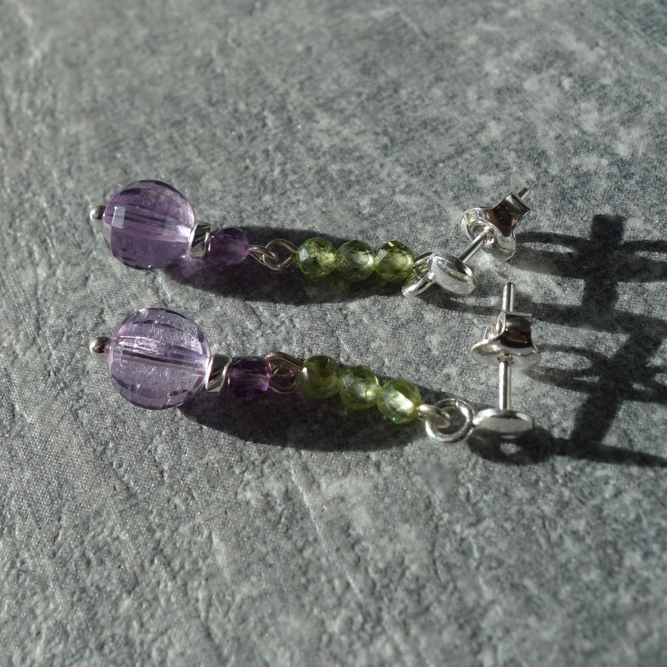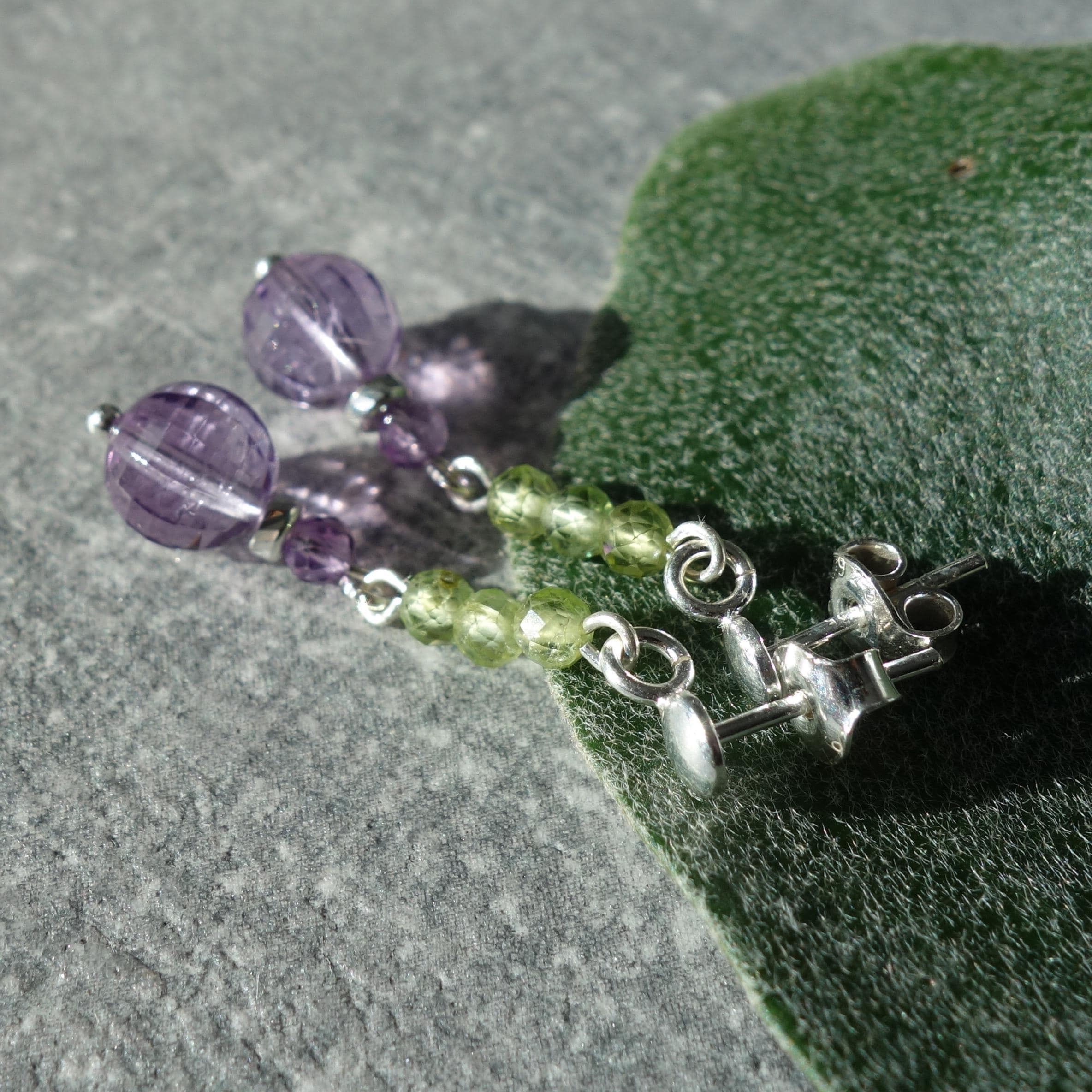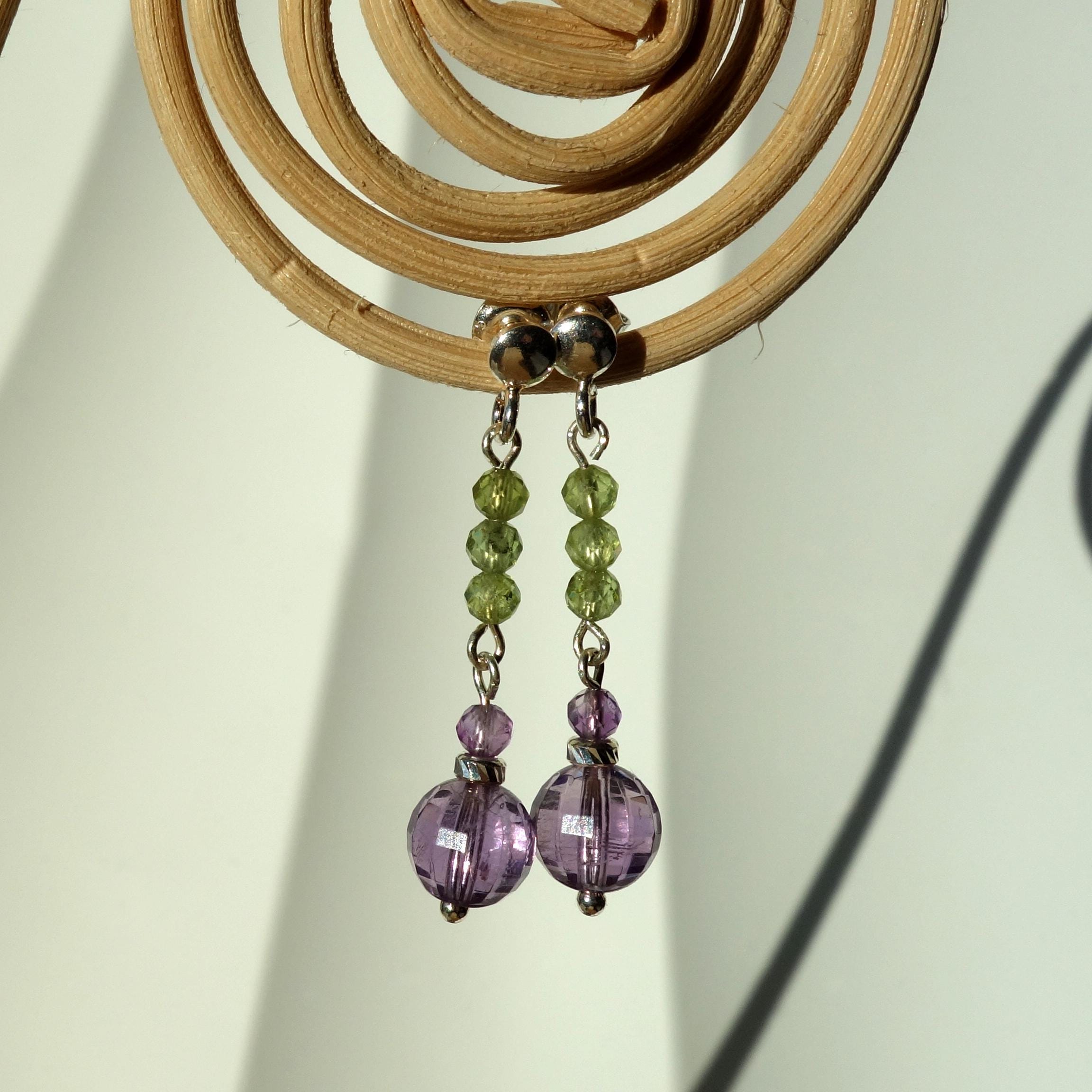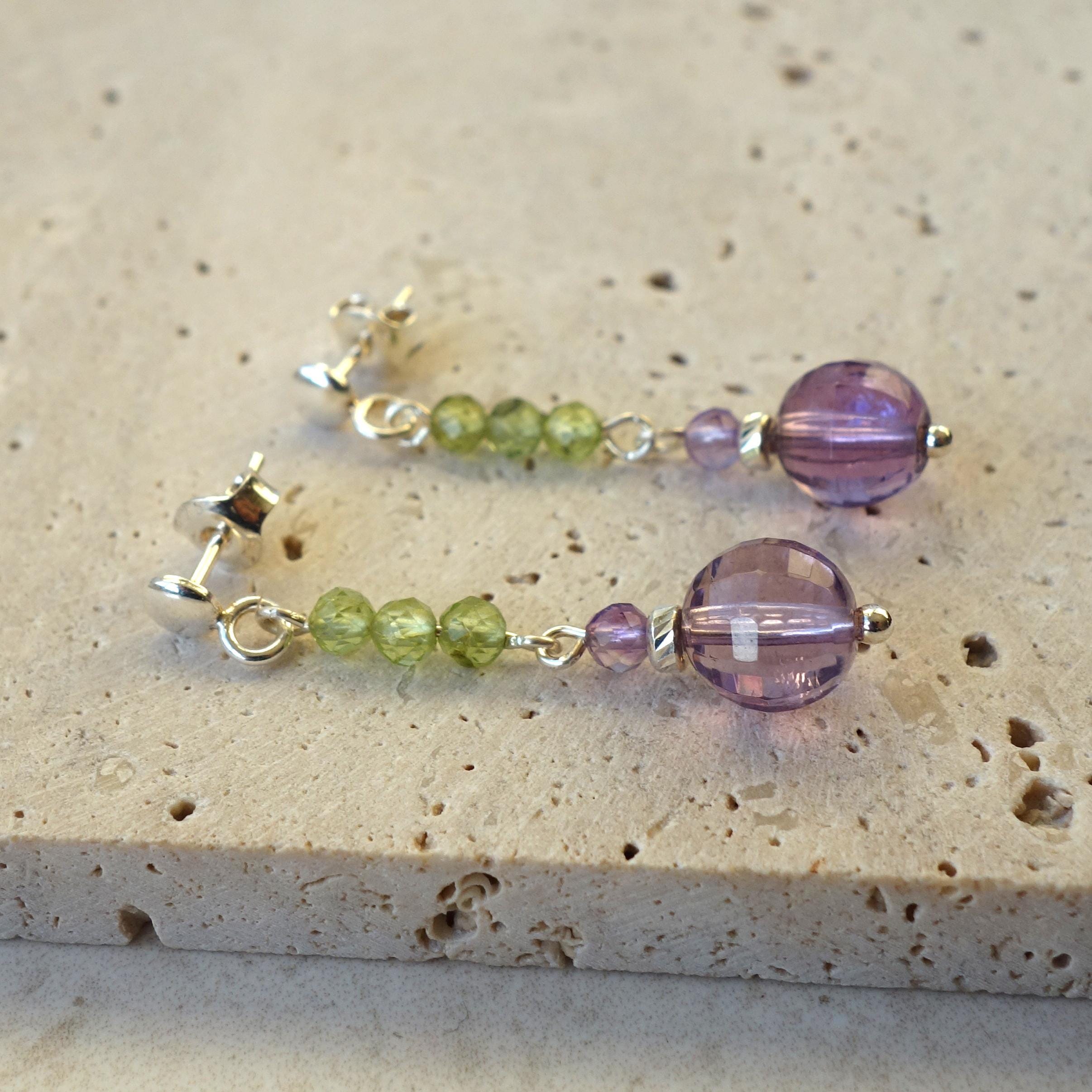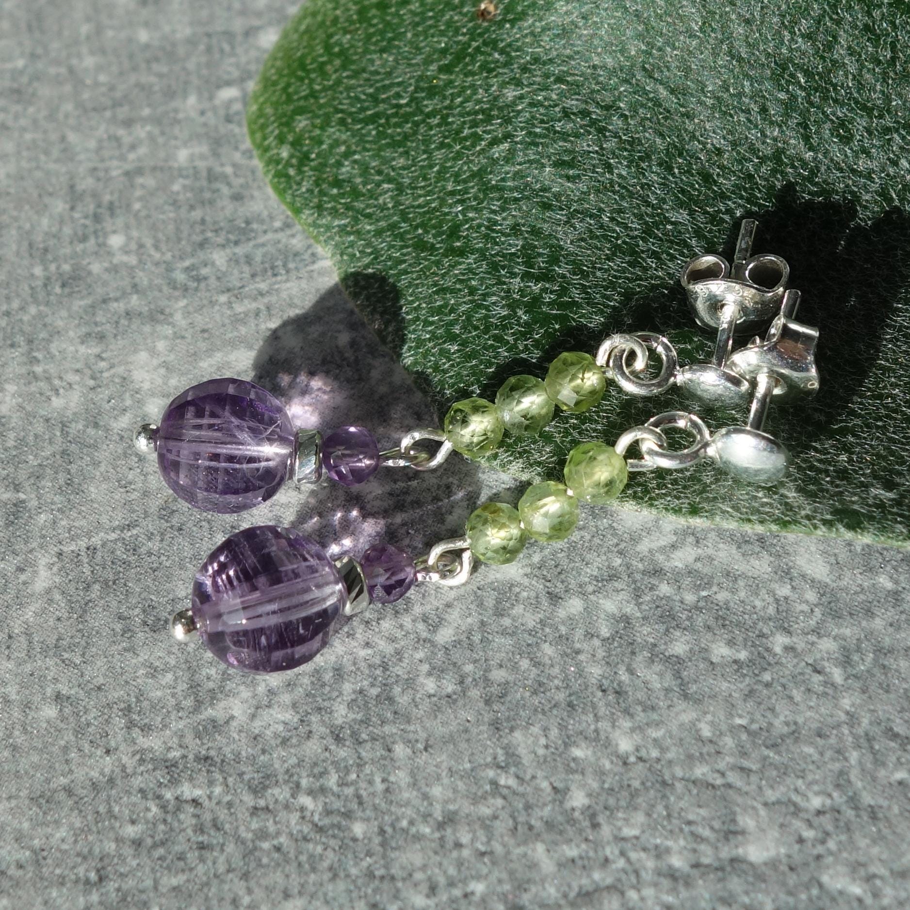 Amethyst and peridot (chrysolite) handmade earrings with 925 sterling silver.