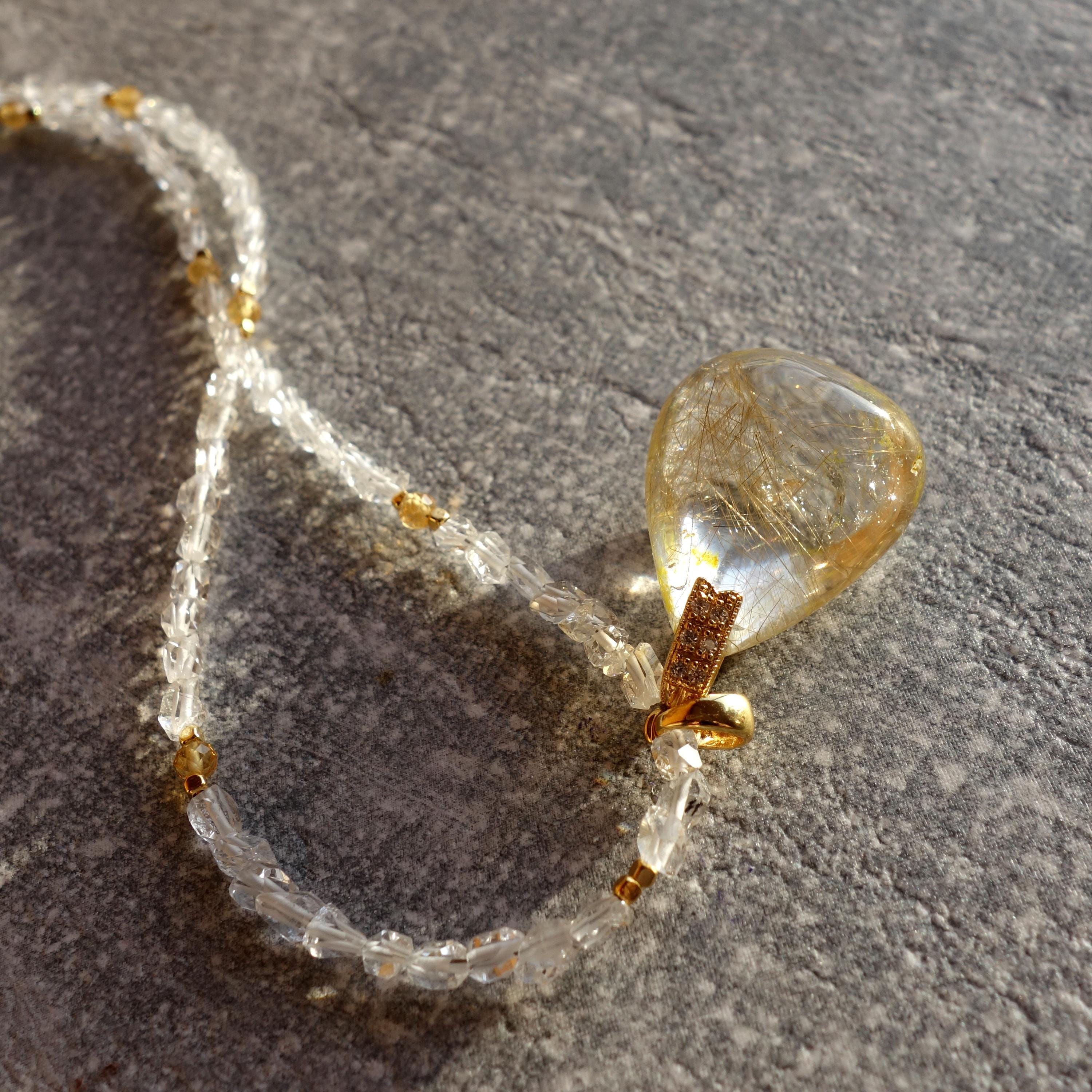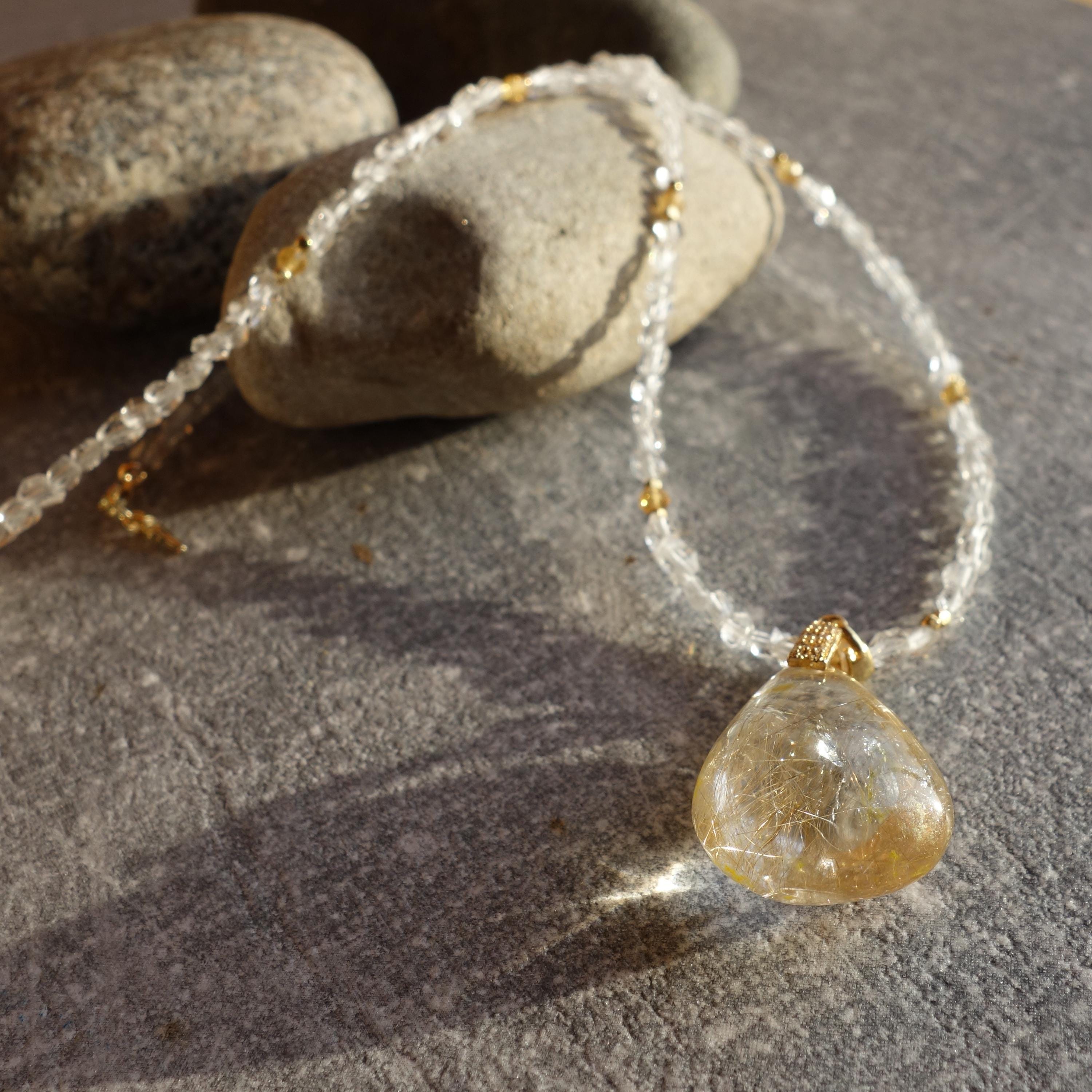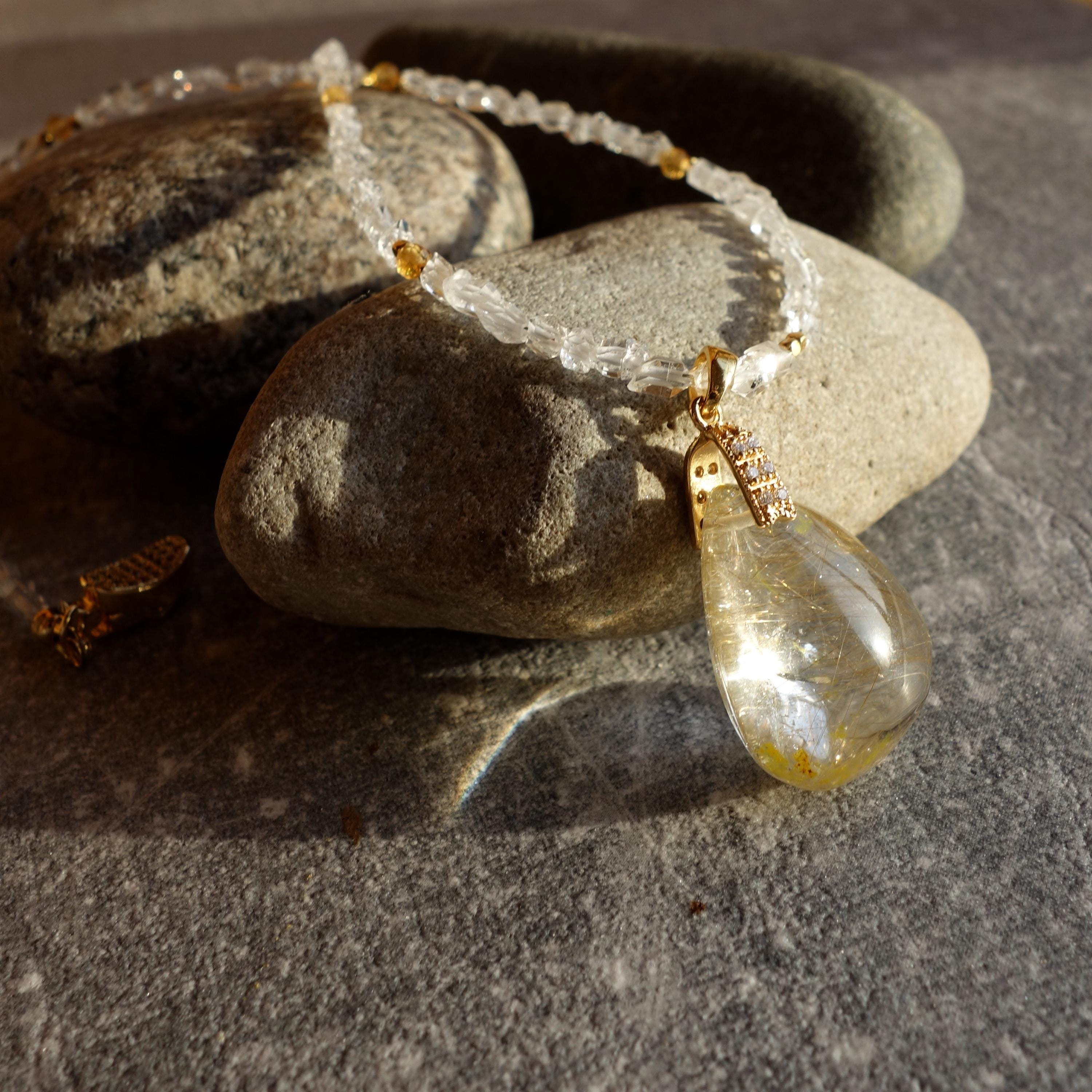 Pendant: Rutilated quartz, 3 x 2 cm (with natural golden rutile needles).