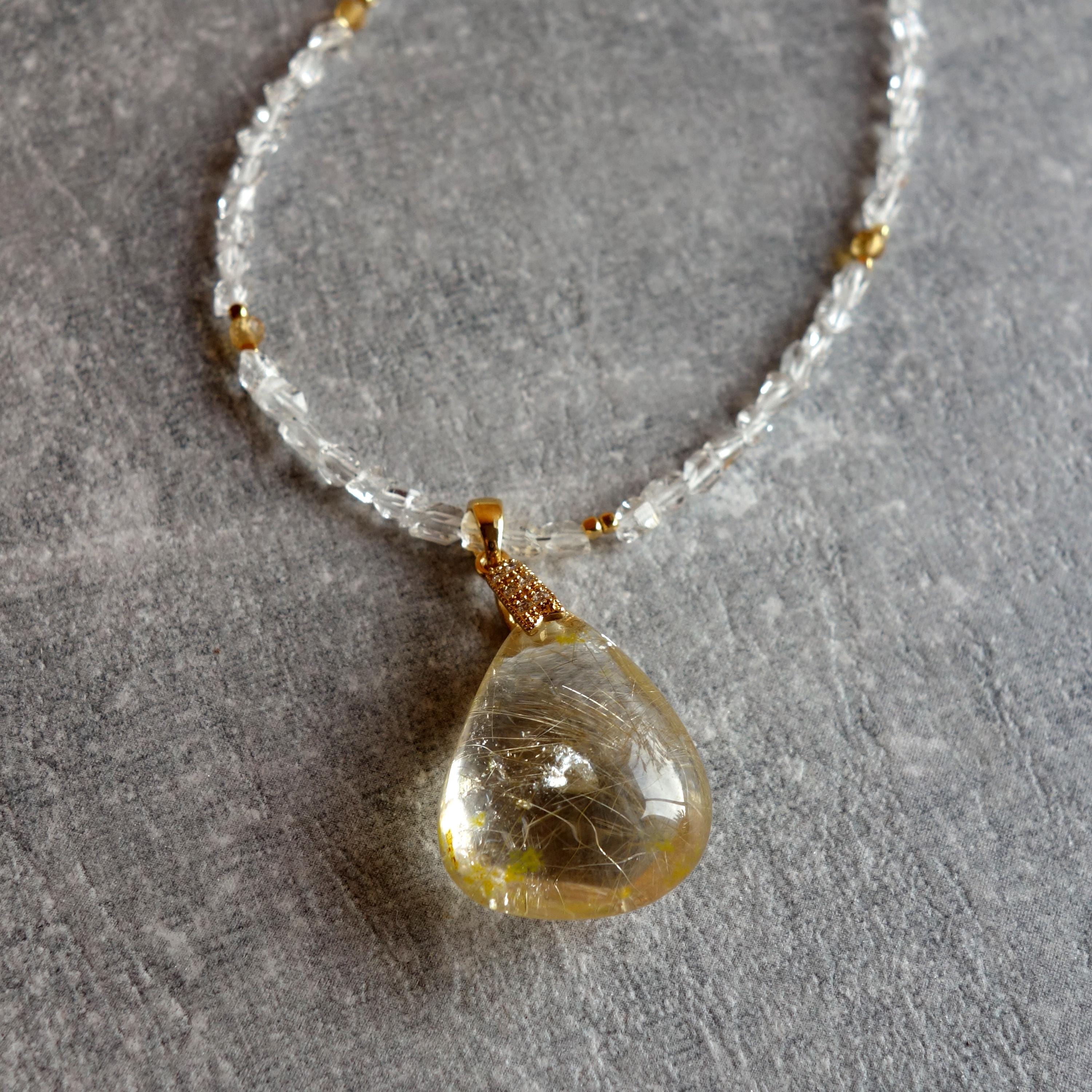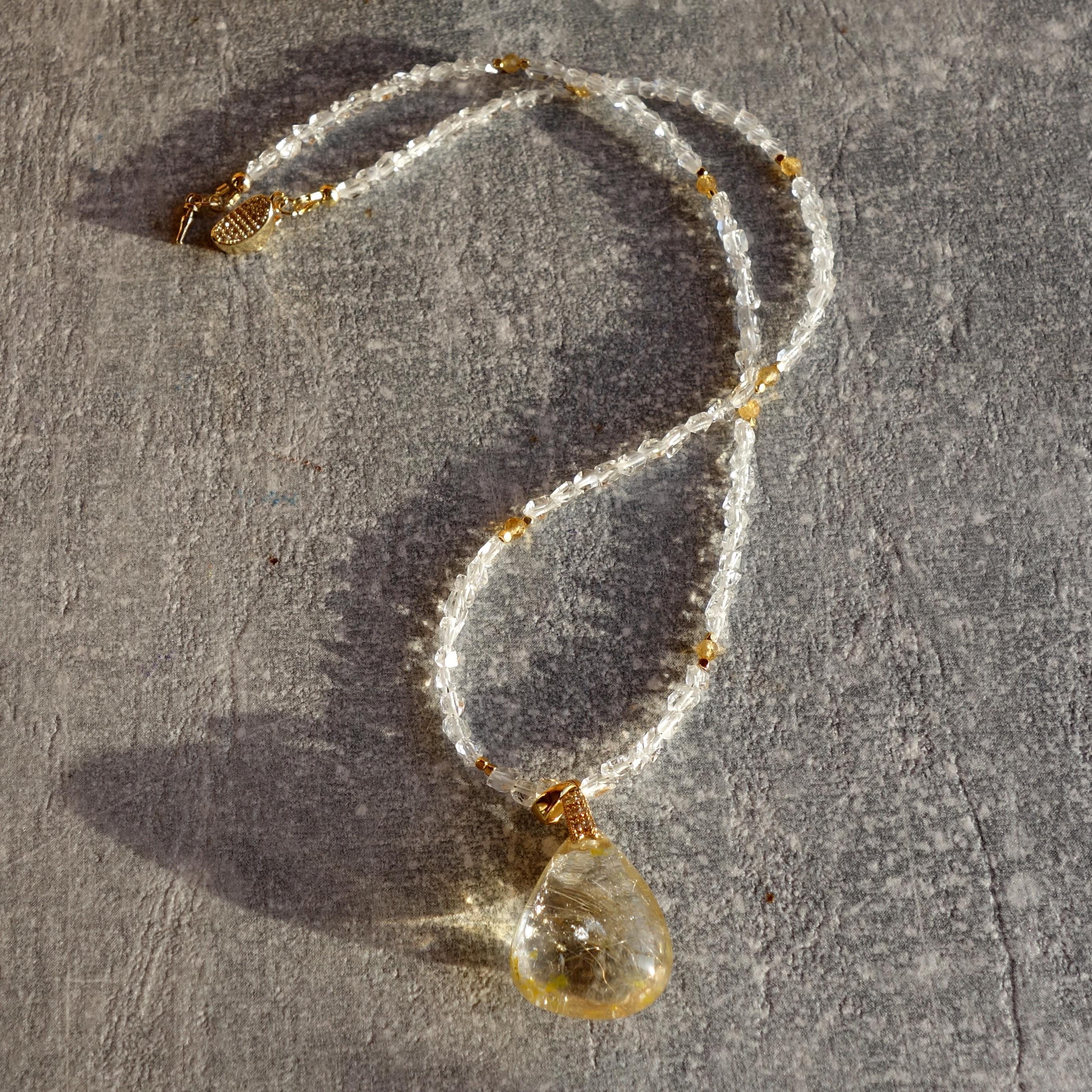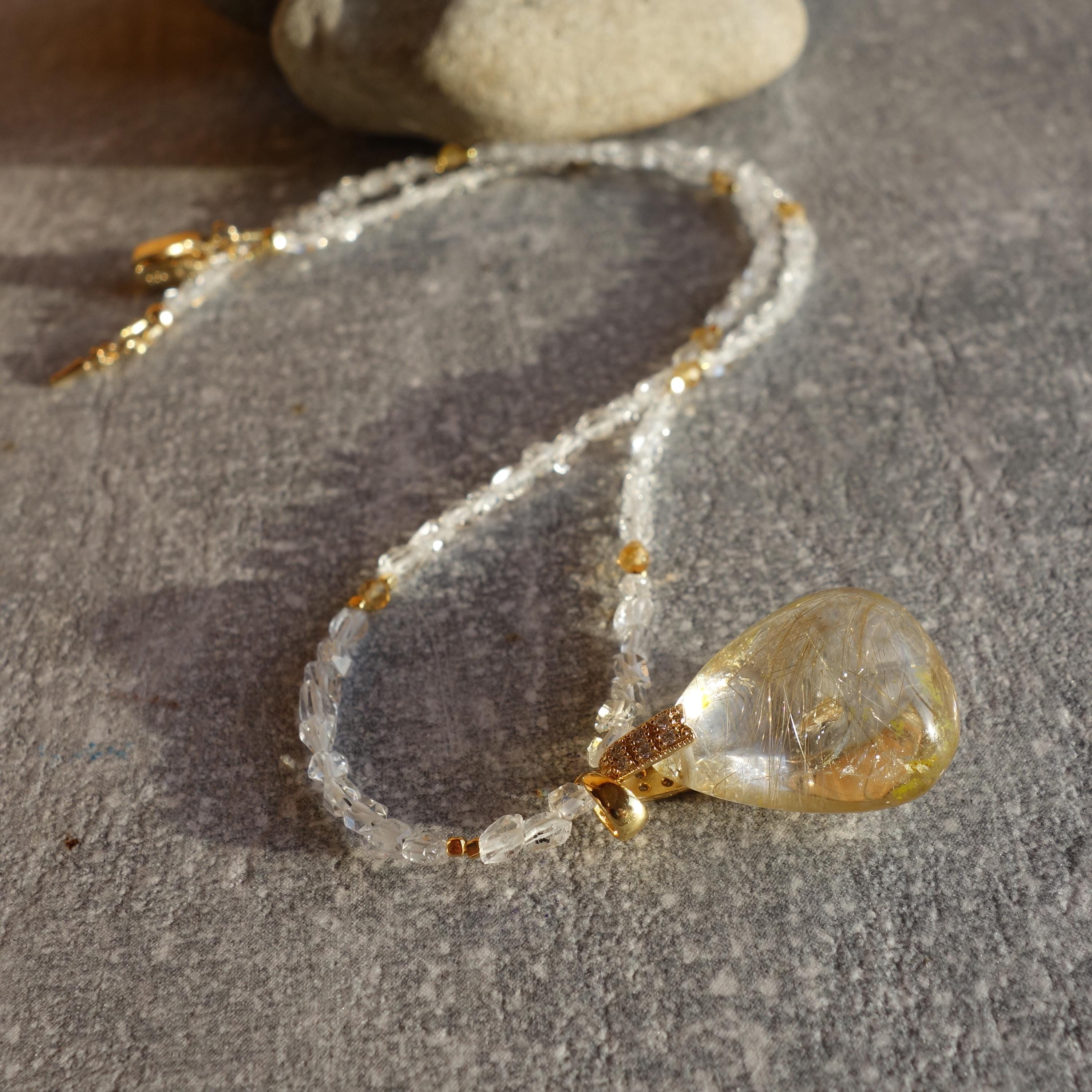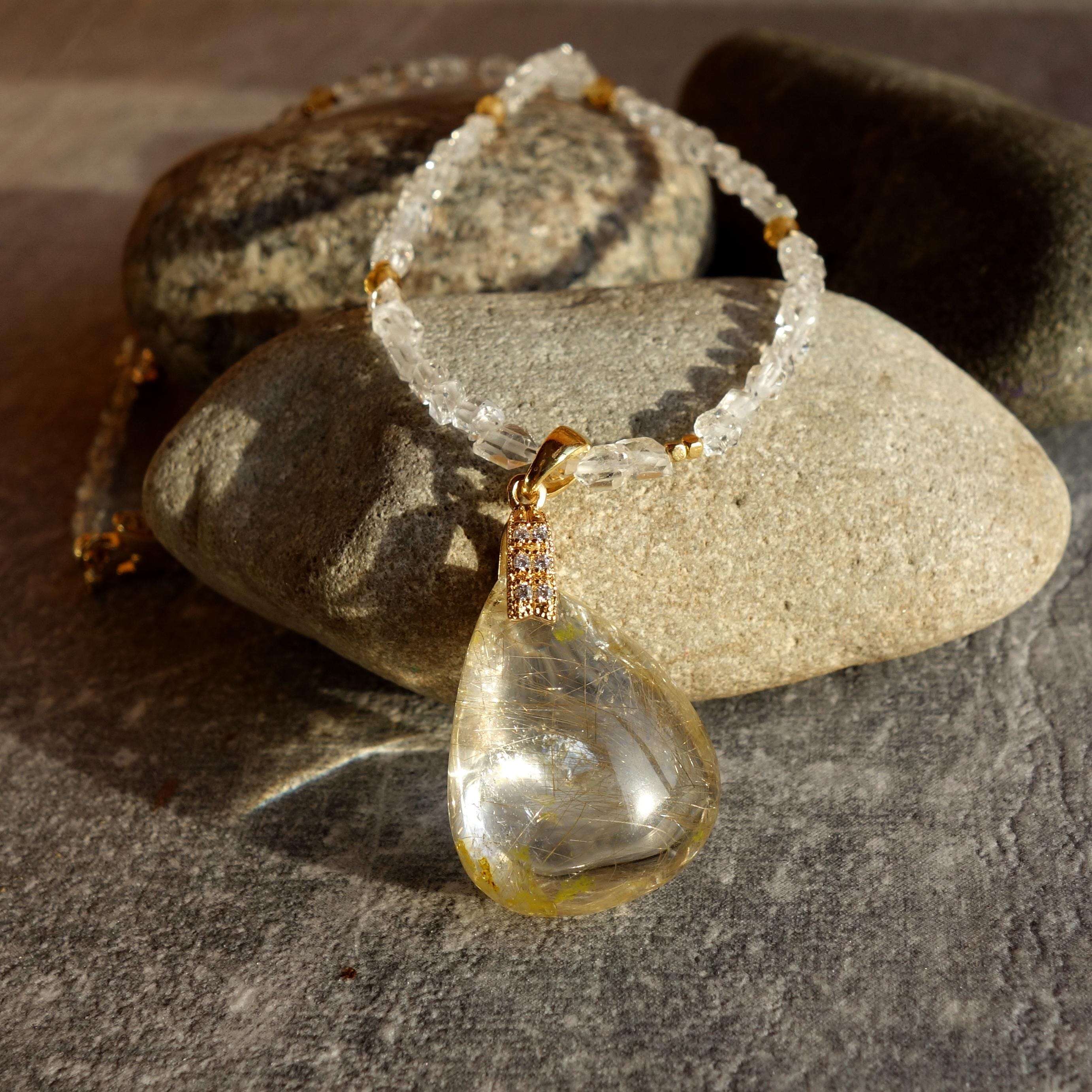 Pendant: Rutilated quartz, 3 x 2 cm (with natural golden rutile needles).