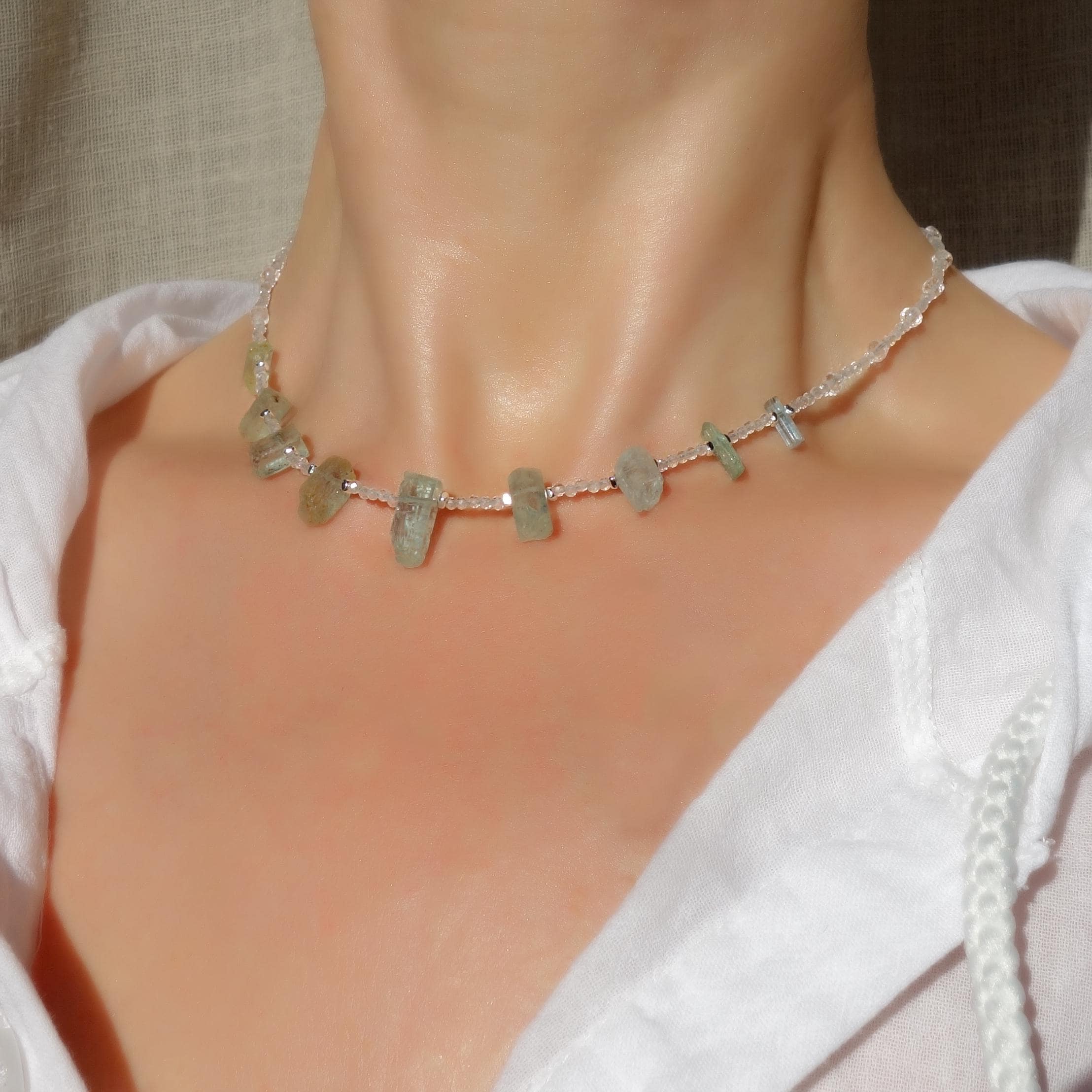 Every stone has unique natural inclusions and color variations, so this necklace is truly one-of-a-kind and made in a single copy.